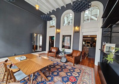 The building is not only old, it is historic, highly sought after, and a design unto itself. The challenge for us was to bring the space into compliance with local codes without interfering with the inherent character of the building.